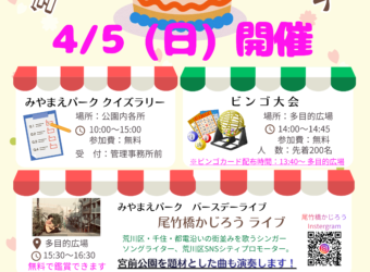 宮前公園は、第1工区の開園から令和8年4月3日にちょうど5周年を迎えます。 記念…
