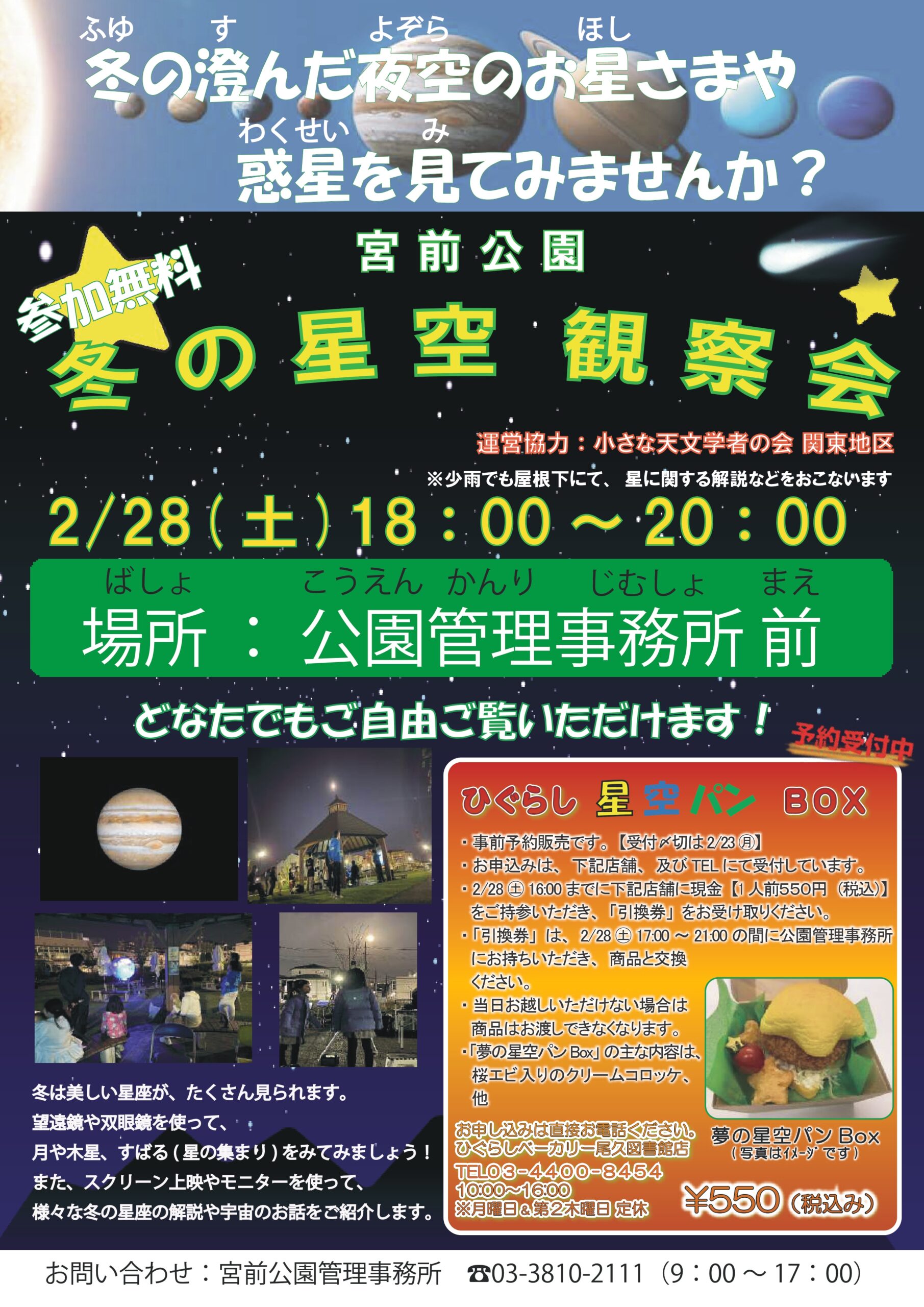 今回の冬の星空観察会に合わせて尾久図書館にある《ひぐらしベーカリー》より、