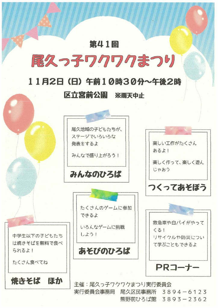 「尾久っ子ワクワクまつり」を宮前公園で開催します!!