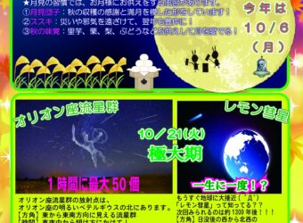 10月のトピックスは①中秋の名月(十五夜)🍡、②オリオン座流星群🌠、③レモン彗星…